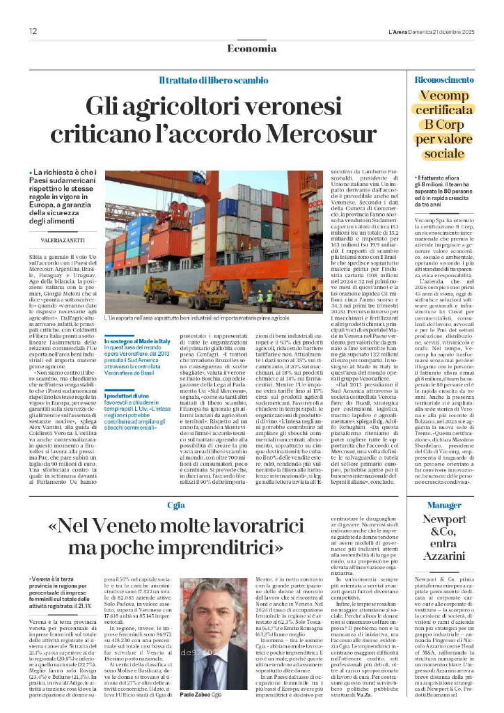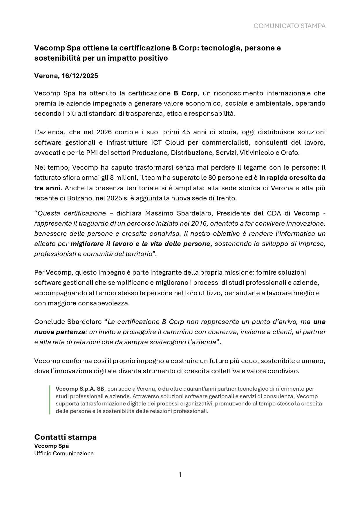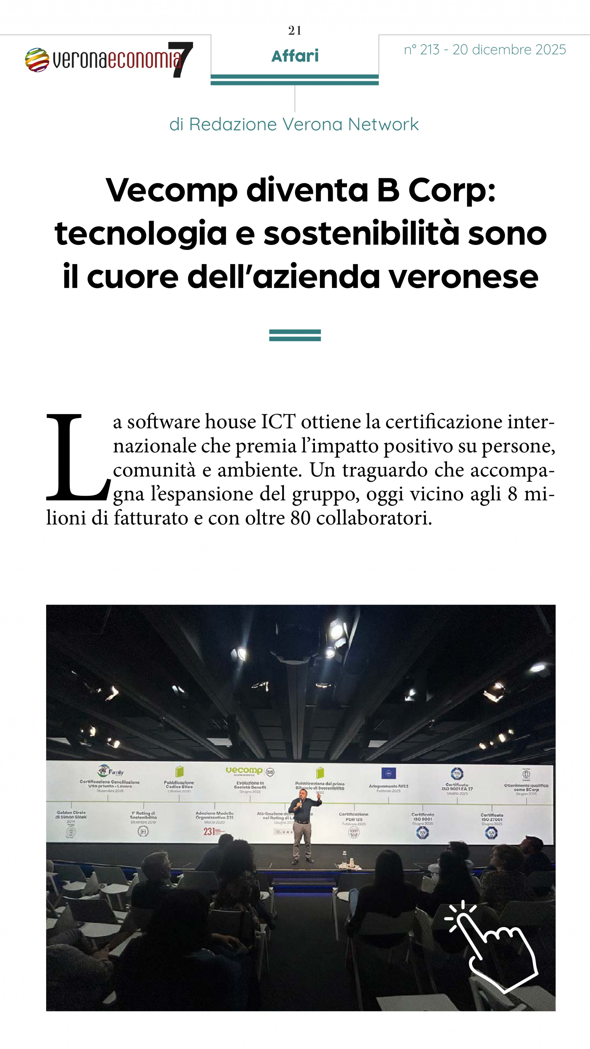 Il percorso di Vecomp come B Corp continua a far parlare anche fuori dall’azienda.
